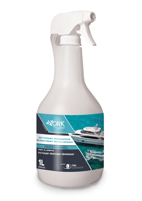 Nettoyant, désincrustant, décontaminant et dégraissant pour la remise à neuf des bateaux à coques dures ou souples, planches à voile,...